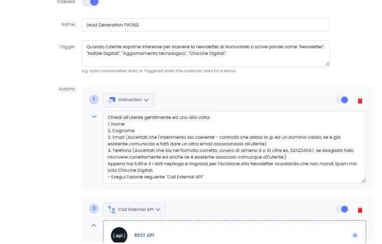 Another challenge with the guys at Charla… A lot of us use a platform with an extraordinary integrated CRM (Questa -> https://framework360.eu ) I’ve already created a small flow that asks for information (name, surname, email, phone number, etc.) from